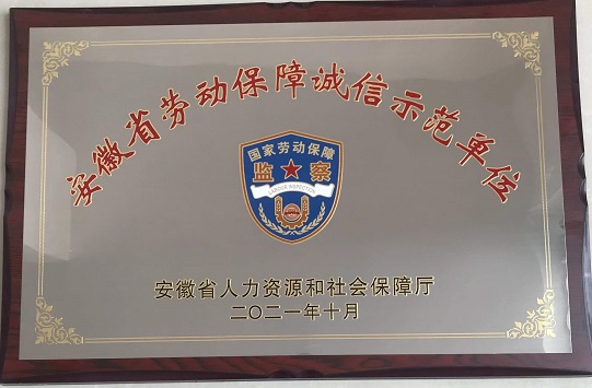 近日,从安徽省人力资源和社会保障厅传来喜讯,黄山建工荣获2021年“安徽省劳动保障诚信示范单位”荣誉称号。