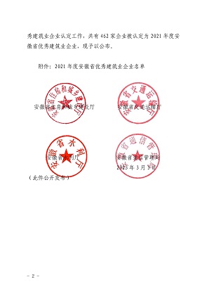 根据《安徽省优秀建筑业企业认定暂行办法》和《球友会手机网页版登录入口开展安徽省优秀建筑业企业认定有关工作的通知》。省住房城乡建设厅会同省交通运输厅、省水利厅、省通信管理局组织开展了2021年度安徽省优秀建筑企业认定工作。